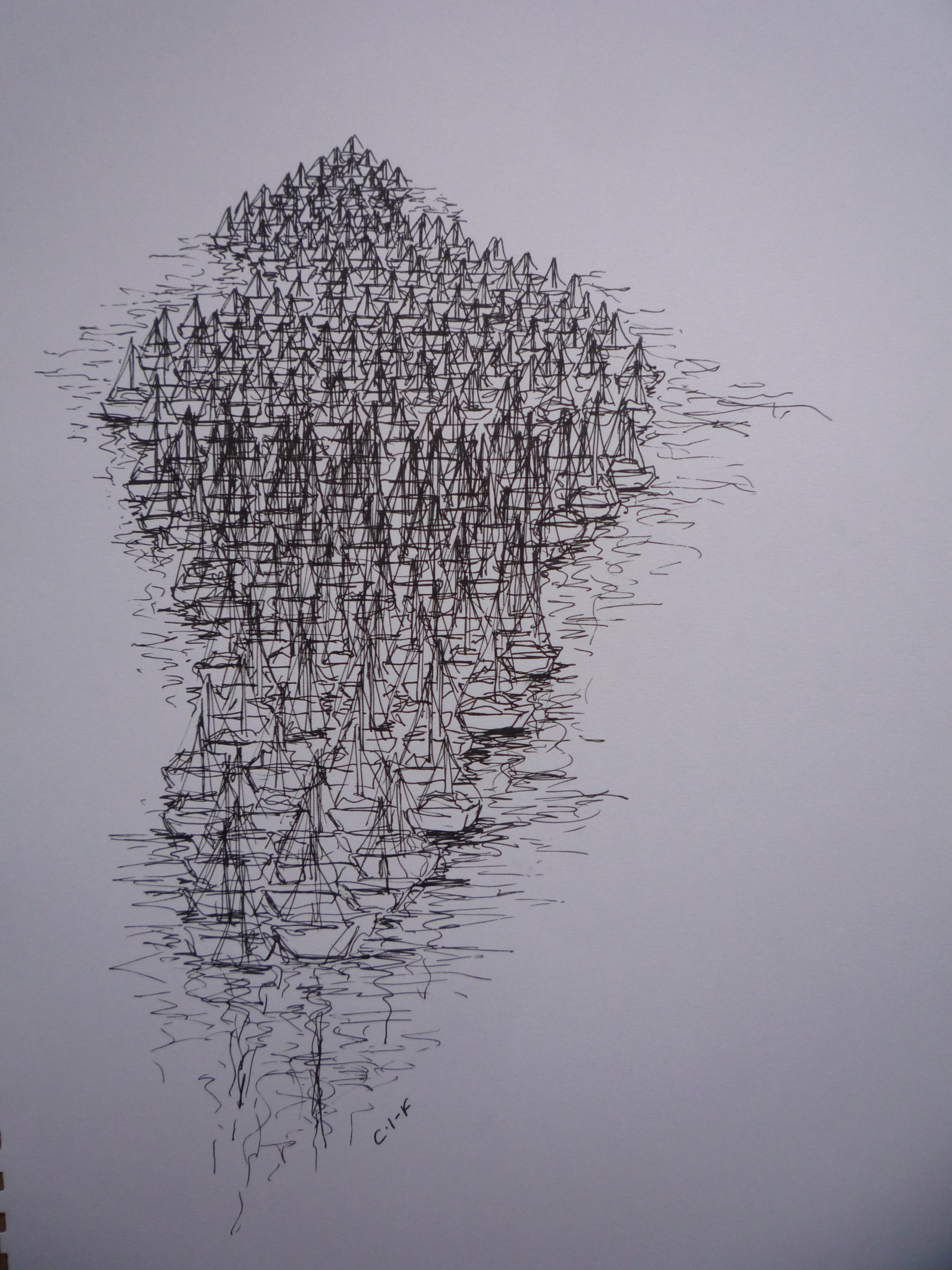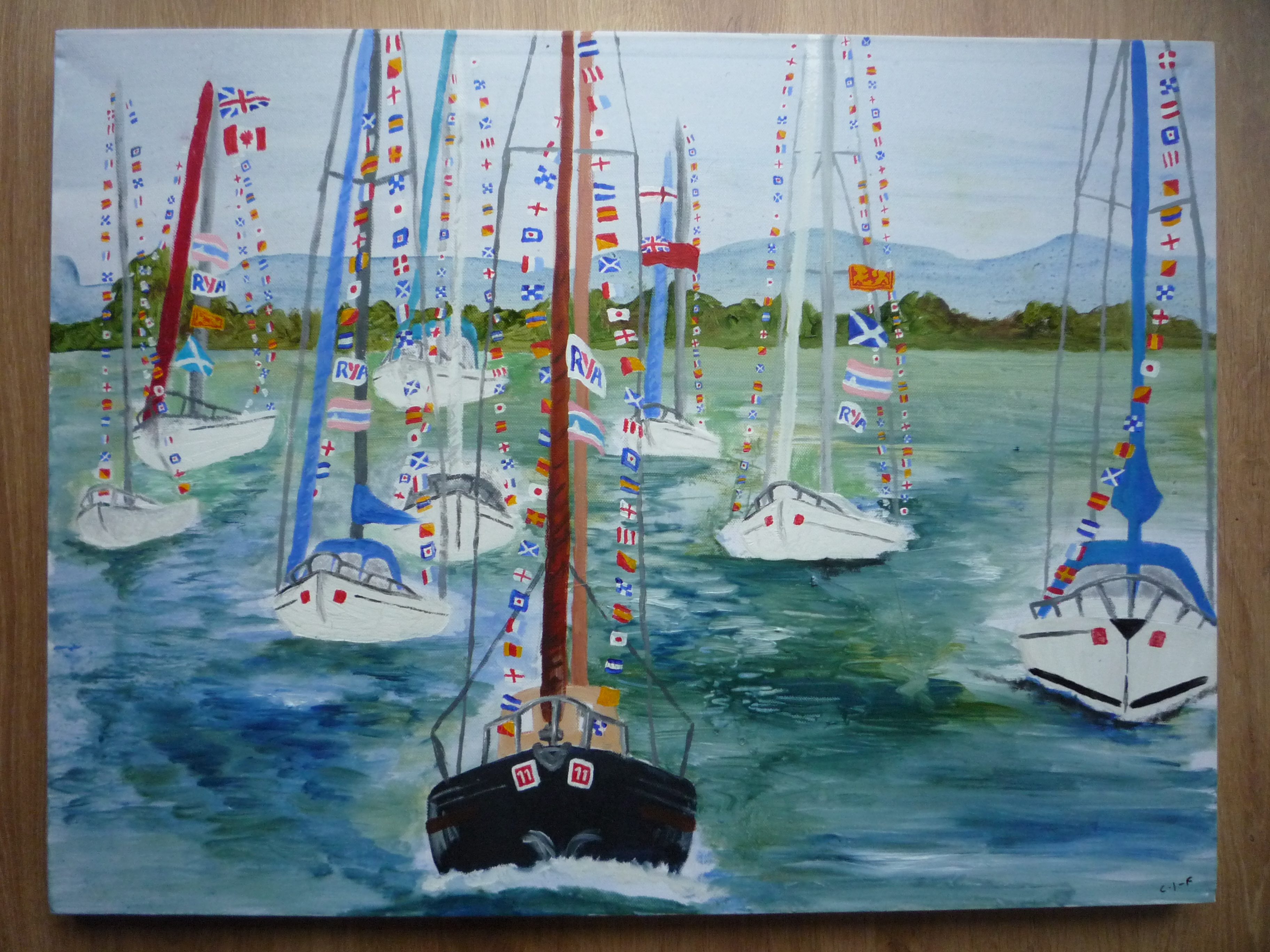 I was incredibly lucky and honoured to be asked to be the Official Artist for the Commonwealth Flotilla held in July of 2014. It was an event organised by the RYA (Royal Yachting Association) and took place up the River Clyde in Glasgow. 250 boats and 1,900 people took part and what a spectacle it was! Never has the Clyde seen anything so exciting! The event was officially from Friday 25th-Saturday 26th however it was unofficially a couple days longer as most boats started further up the Scottish coast. I was part of this initial journey which was just as well as I had never drawn a boat before in my life! I needed those extra couple of days to wrap my head round the linear qualities of all these boats. For someone who is used to drawing the human figure drawing boats is quite a jump!