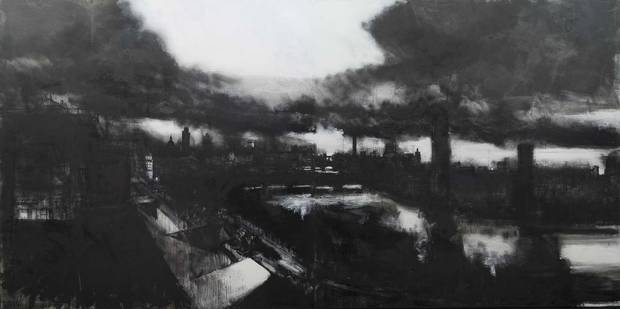 As promised here is the post about Laurence Kavanagh whose work I viewed the other night at Gallery North. I wasn’t sure what to make of it initially. My first observation was the lack of colour. The show was entirely monochrome with the exception of one piece. As a result it was evident that Kavanagh had truly pushed his monochrome palette to it’s limits, using tonal shades of grey I didn’t even know existed! It made me think of the work of John Virtue (see below).
