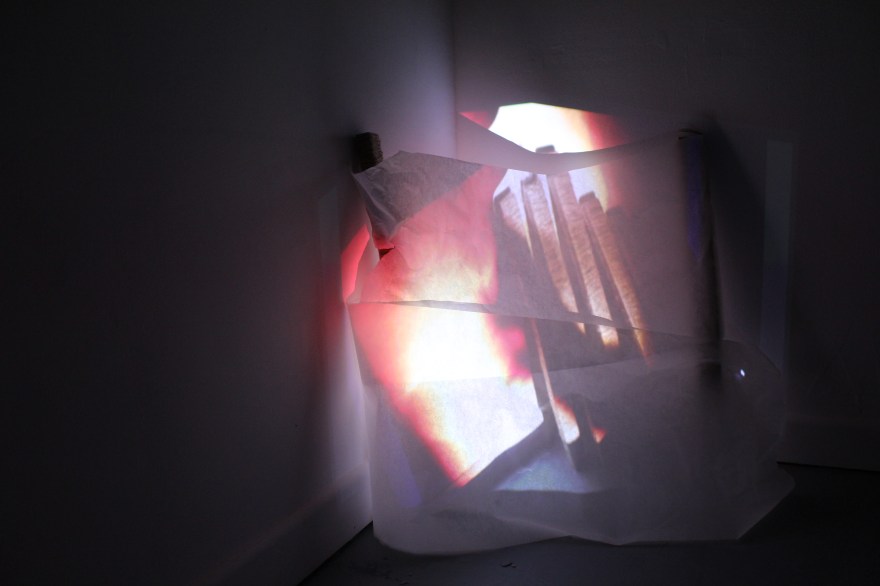 Untitled: projection, greaseproof paper, wood, thread