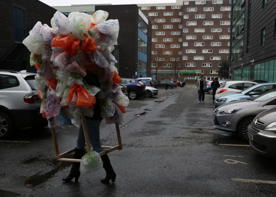 I think my laptop has been hinting at me to blog about this piece for a while now. Every time I open my pictures folder it’s there. There are more images which I will eventually post, but this one is my favourite and for now I feel it’s enough. I’ve been putting it off until now as there’s an entire build up to this work which are important. Without those it can carry all the wrong connotations and be interpreted incorrectly. But then I thought, why do I need the build up? Shouldn’t a work be able to speak for itself? Isn’t the whole point of art the fact people will interpret different things in different ways? So I’m going to approach this from a completely new angle and ignore all my concepts behind it for now. Instead I’m just going to take about the comedy element. You should have seen how many looks I got doing this, people probably thought I was bonkers! Who wouldn’t?! I’m walking around in a framework covered in bags as if it’s the most ordinary thing in the world! Yet weirdly I didn’t feel too ridiculous. Well, the sense of animosity the bags provided probably were to thank for that. I think though people can justify doing a lot of crazy things ‘in the name of art’ and suddenly the crazy part doesn’t seem so radical. It’s the same with getting naked. If it’s for a photoshoot, why not? If it’s on the street, you’ll be arrested. It’s funny the safety net that art provides in cases like these…