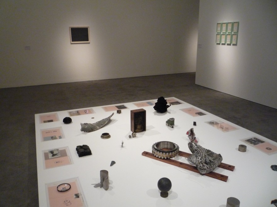 What really struck me about this exhibition was the layout; you could tell how much thought had been put into this aspect. There were divides within the space so that some work was hidden when you first entered, there was a separate room and then a little alcove in the wall. There were waist high plinths and then plinths that were just above ground level – the exhibition really forced your eye to travel and it was fantastic! It felt almost like a journey through the artwork. There was also sound playing across the entirety of the room which I think was the sound of materials scraping against the floor as they were being moved. I may be wrong as it was kind of obscure and difficult to pinpoint but given the satellite material laid out on the low-lying plinth, it did suggest the sounds were depicting the movement of these items. If not then I am intrigued by what the sound was capturing; in a way it is this ambiguity that makes it all the more interesting.