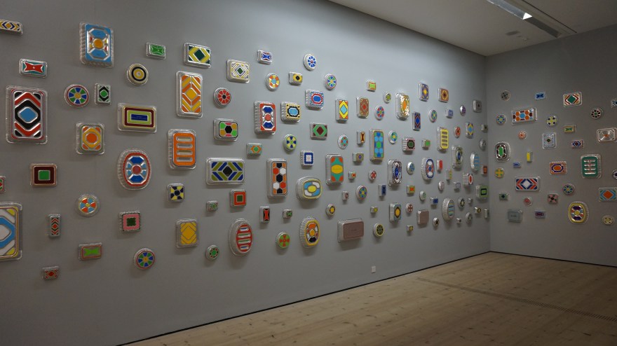 Contemporary art is often controversial in it’s reception. Some people love it, some people hate it. Some people think their children could have done it. Other’s say their child didn’t do it and the artist beat them to it! This artwork is the perfect example of that retort. Wurtz’s practice revolves around taking a simple everyday object and turning it into something beautiful. In this case, he used food trays and painted the shapes on the bottom of them in different colours of acrylic. First off, I had never even noticed there were so many shapes to the bases of these trays. Second off, this is genius!
