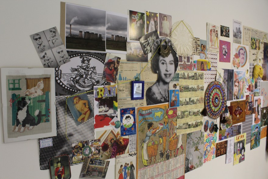 I was particularly taken by this piece. As the eye shifts across the work, it is constantly met with fantastically bold items such as maps, stamps, tapestries, dish towels and jewellery. It is highly tactile piece that for me really appealed as I felt like I was being invited into the artist’s methods and thought process. I could see from the variety of items present that collecting is integral to her practice. Colours, textures and the considered distribution of both these elements contributed to the success of this beautifully energetic work.