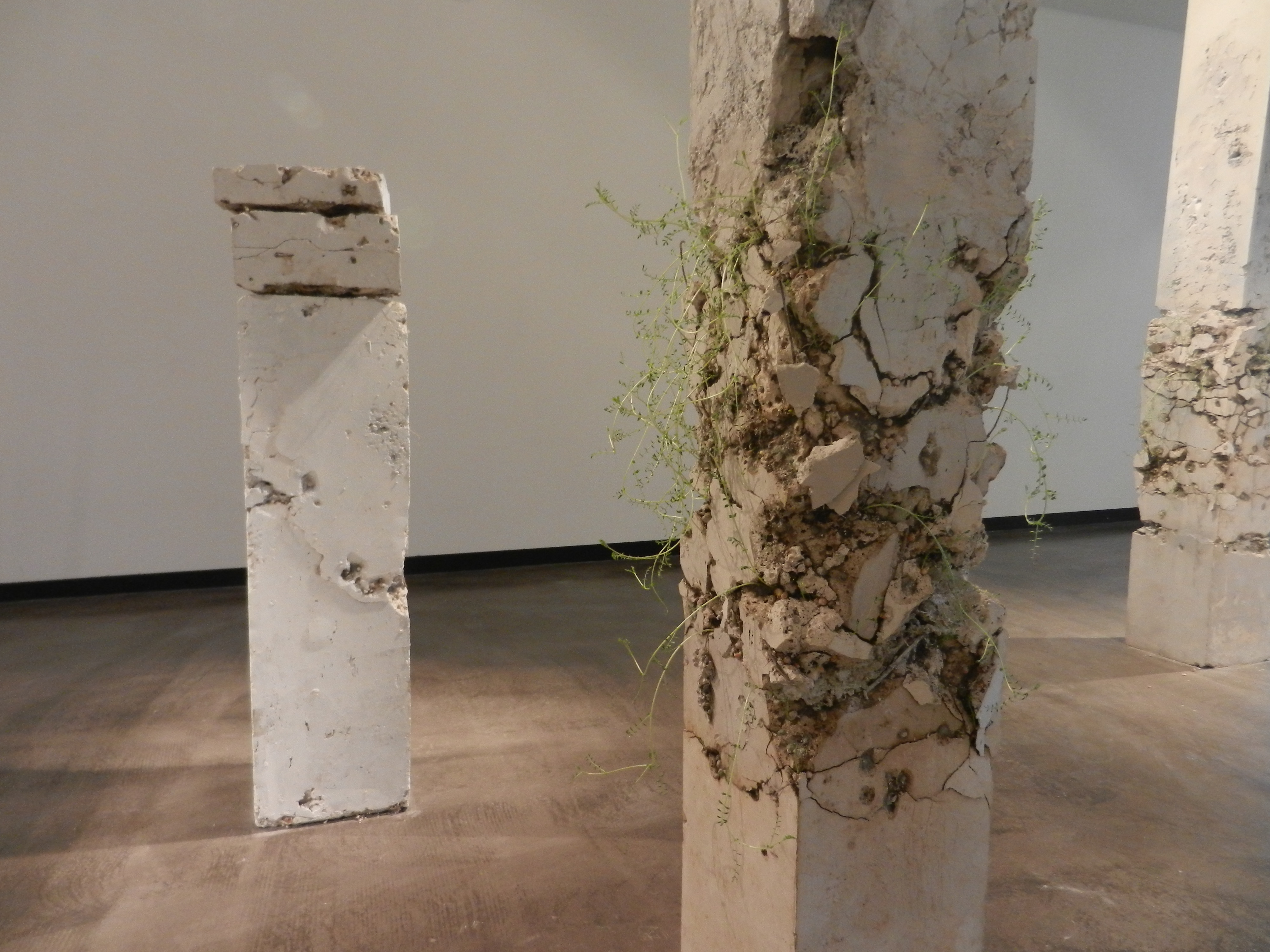 What really struck me about this exhibition was the layout; you could tell how much thought had been put into this aspect. There were divides within the space so that some work was hidden when you first entered, there was a separate room and then a little alcove in the wall. There were waist high plinths and then plinths that were just above ground level – the exhibition really forced your eye to travel and it was fantastic! It felt almost like a journey through the artwork. There was also sound playing across the entirety of the room which I think was the sound of materials scraping against the floor as they were being moved. I may be wrong as it was kind of obscure and difficult to pinpoint but given the satellite material laid out on the low-lying plinth, it did suggest the sounds were depicting the movement of these items. If not then I am intrigued by what the sound was capturing; in a way it is this ambiguity that makes it all the more interesting.