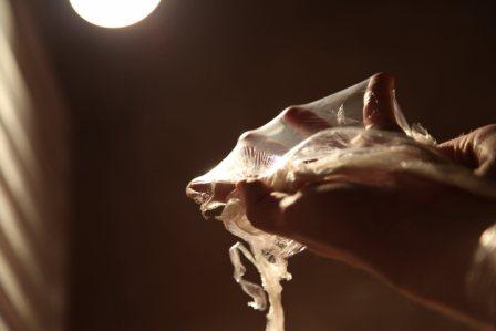 So of course I started to think about the material in relation to my own body. Through it’s tactility I was already starting to engage with it, but I wanted to further this engagement. That’s when the idea of water came to me. As I mentioned in my last post, I have been thinking a lot about water and time recently and am starting to bring them into my work more. So I asked my friend, given her highly articulate understanding of this material, if she could help me capture these images. And what a perfect job she did! We used my desk lamp as a spotlight, my bath tub, her material and my body to produce these shots. It involved a lot of stretching, balance, holding uncomfortable positions and very cold bath water, but it was worth it!